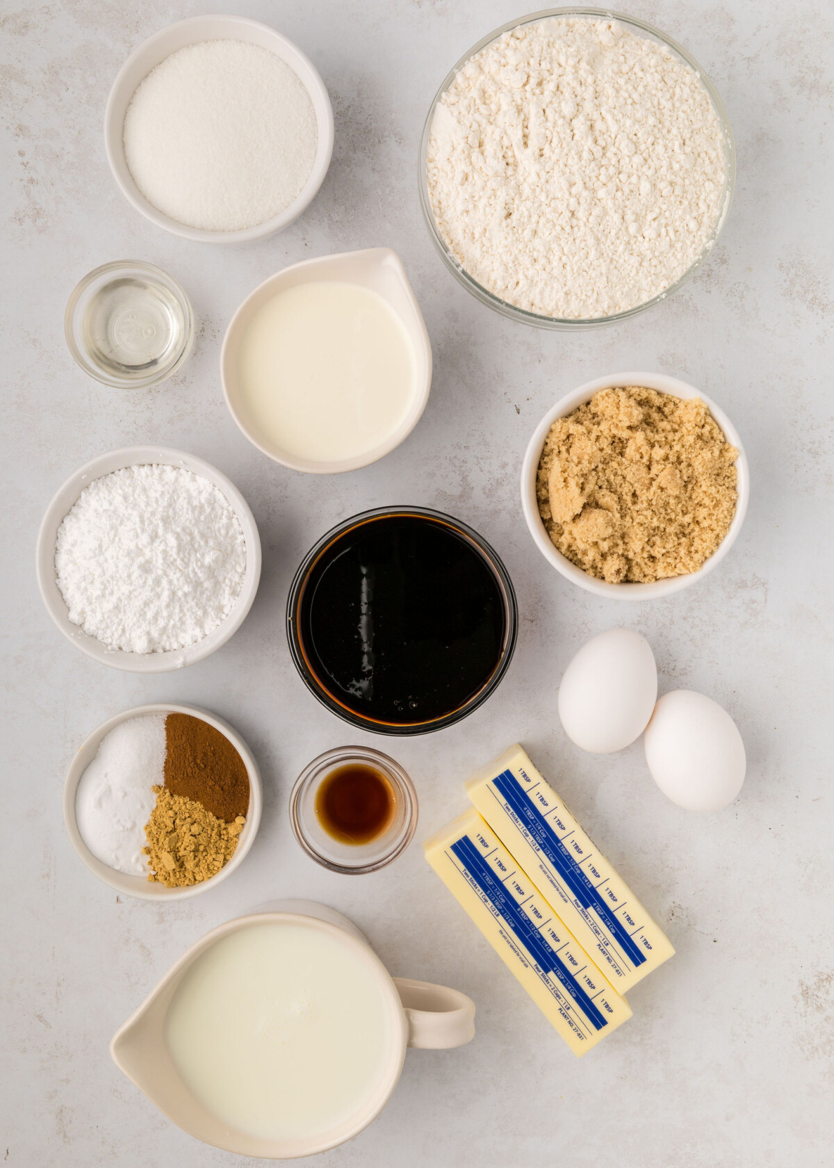 For the whipped cream: heavy whipping cream, powdered sugar, and molasses.