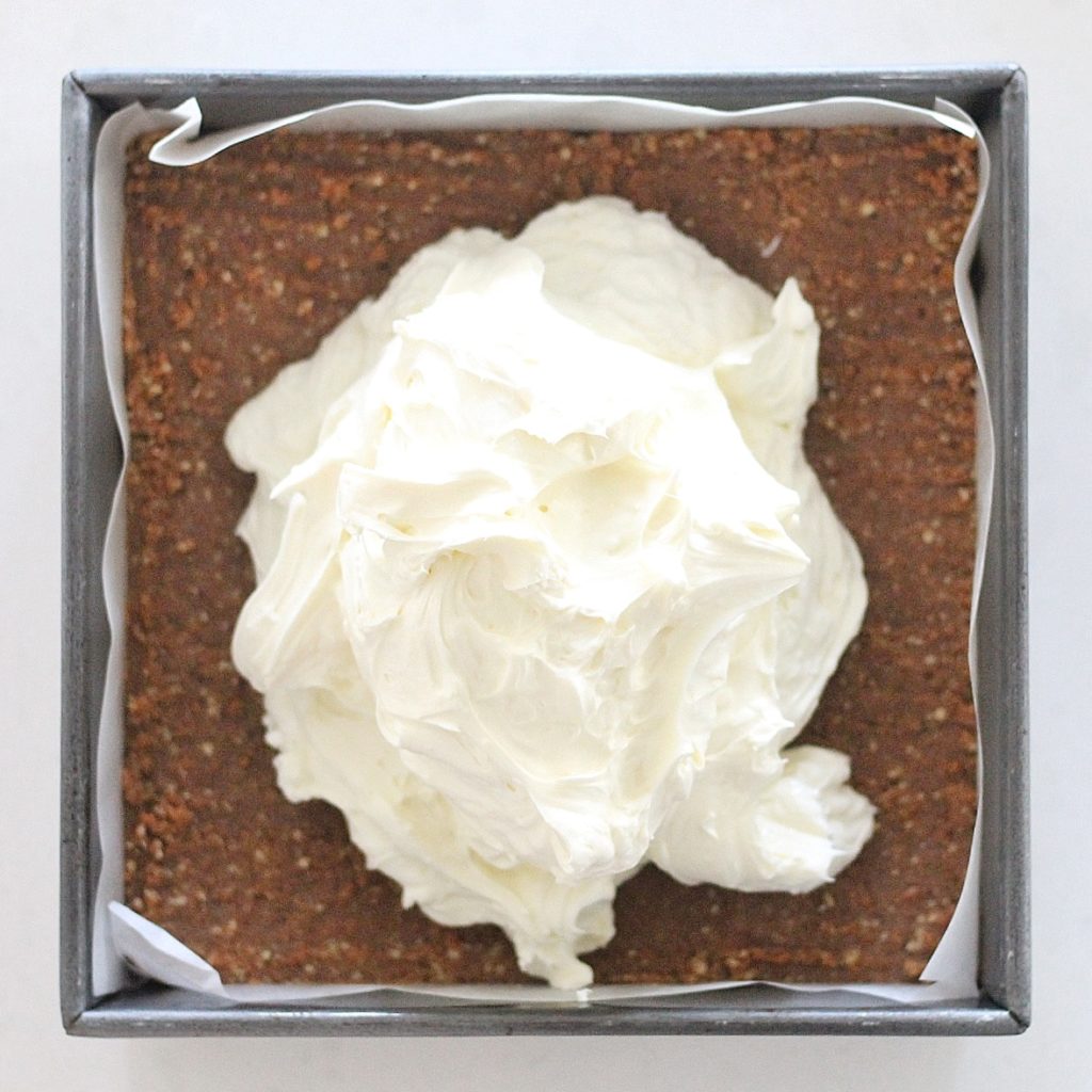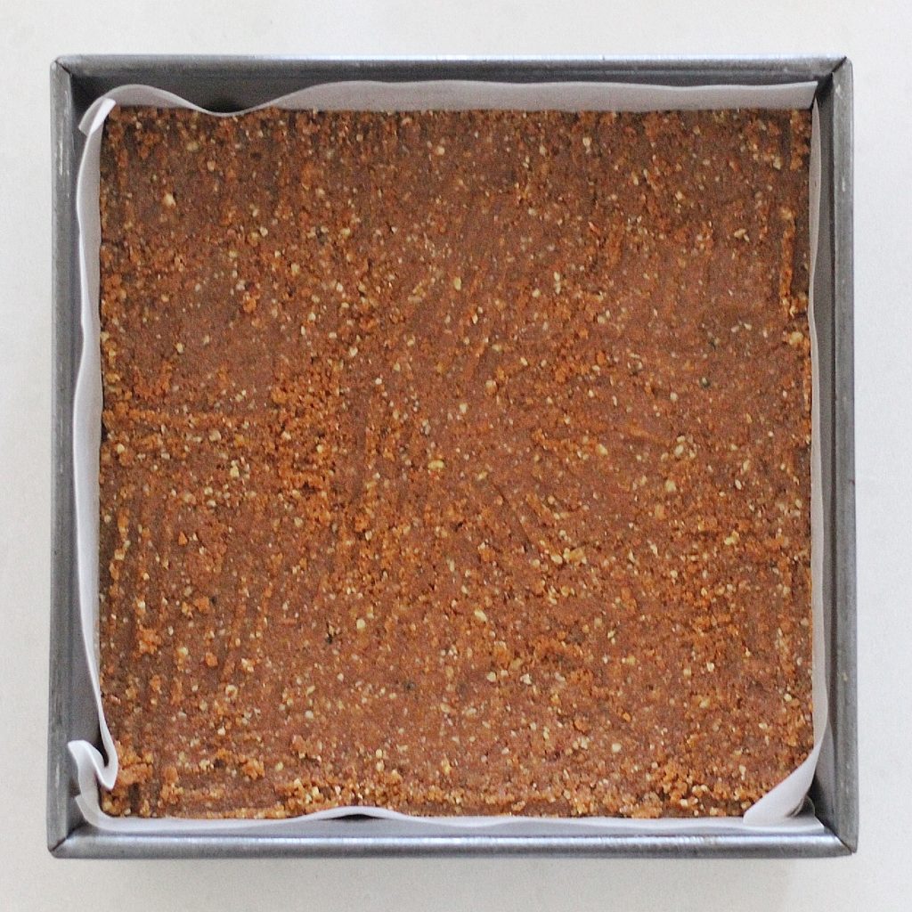 - Evenly and firmly press the crust into the pan. Refrigerate while you make the other elements.