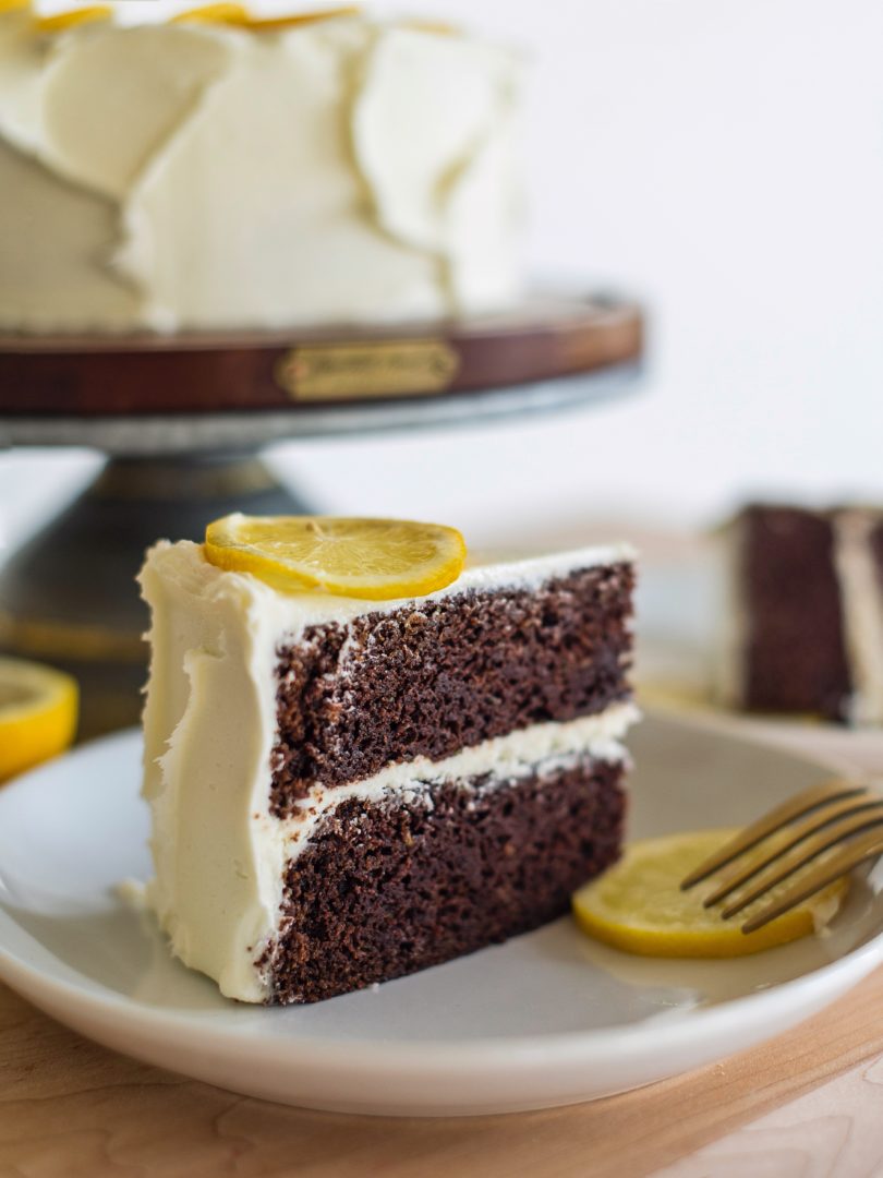 Chocolate Zucchini Cake – moist chocolate zucchini cake layers with a lemon cream cheese frosting.