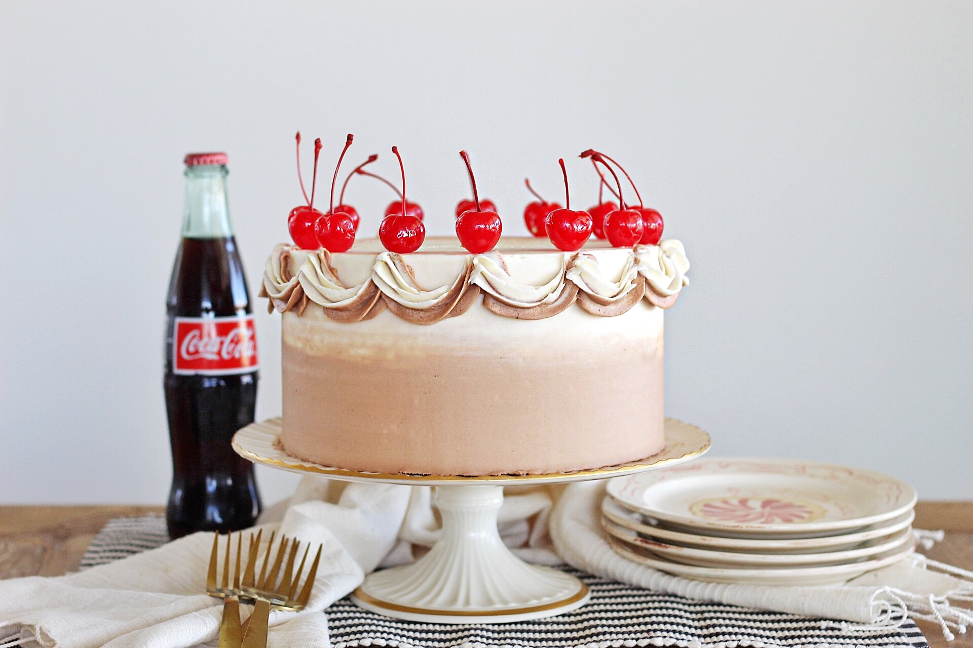 Chocolate Coca Cola Cake: chocolate cola cake with a chocolate cola glaze and vanilla buttercream.