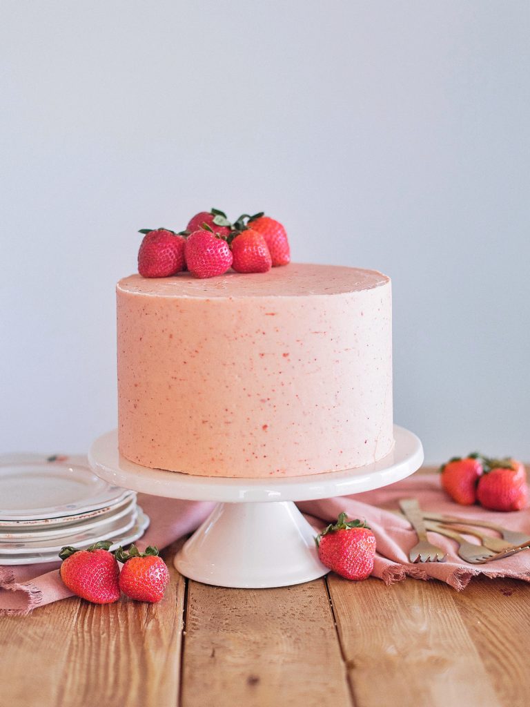Light and Fluffy Strawberry Cake with Strawberry Buttercream
