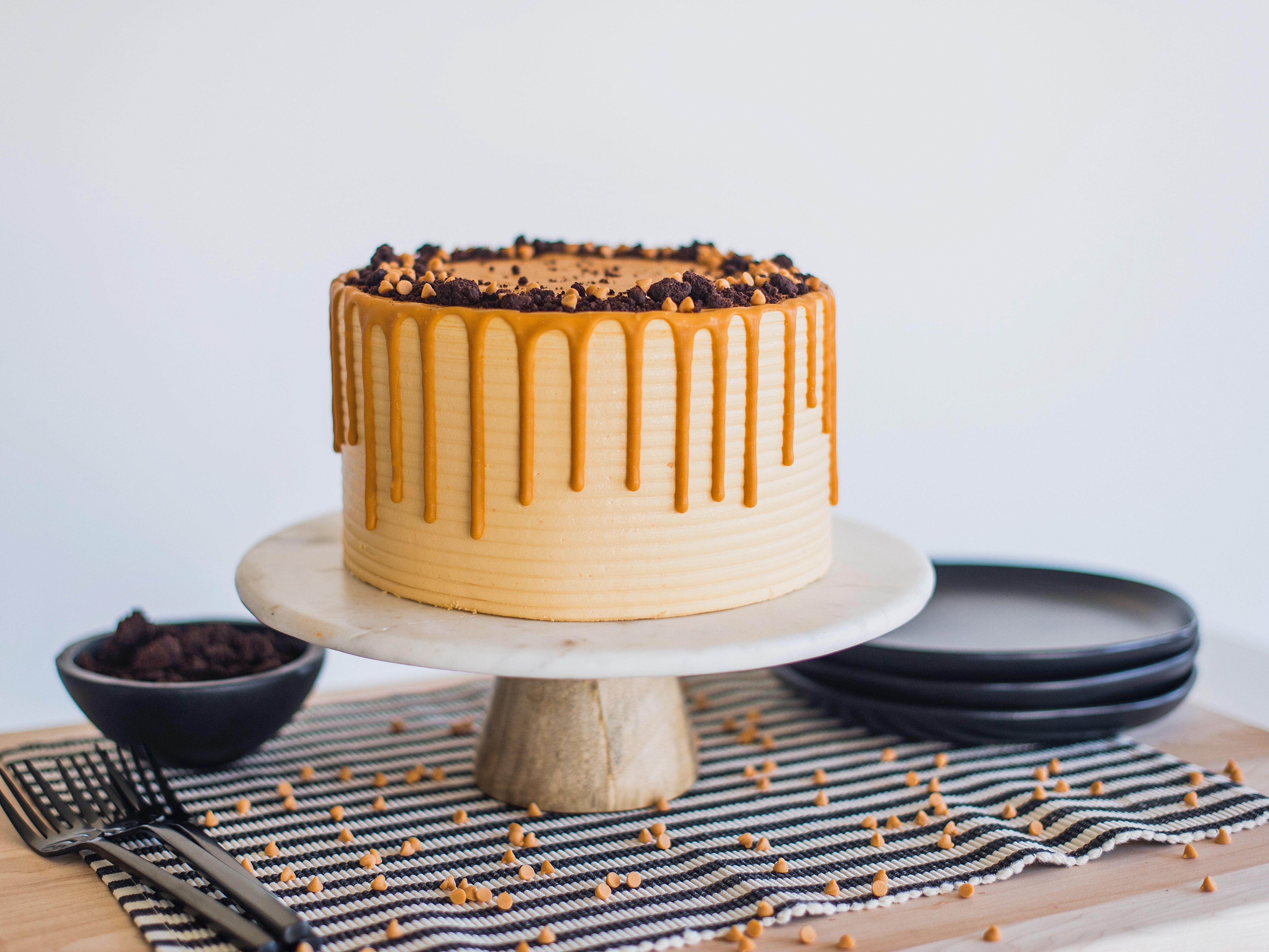 Chocolate Chip Butterscotch Cake – Chocolate chip cake layers with butterscotch frosting, chocolate cookie crumbs and butterscotch ganache. Chocolate Chip Butterscotch Cake One more cake …