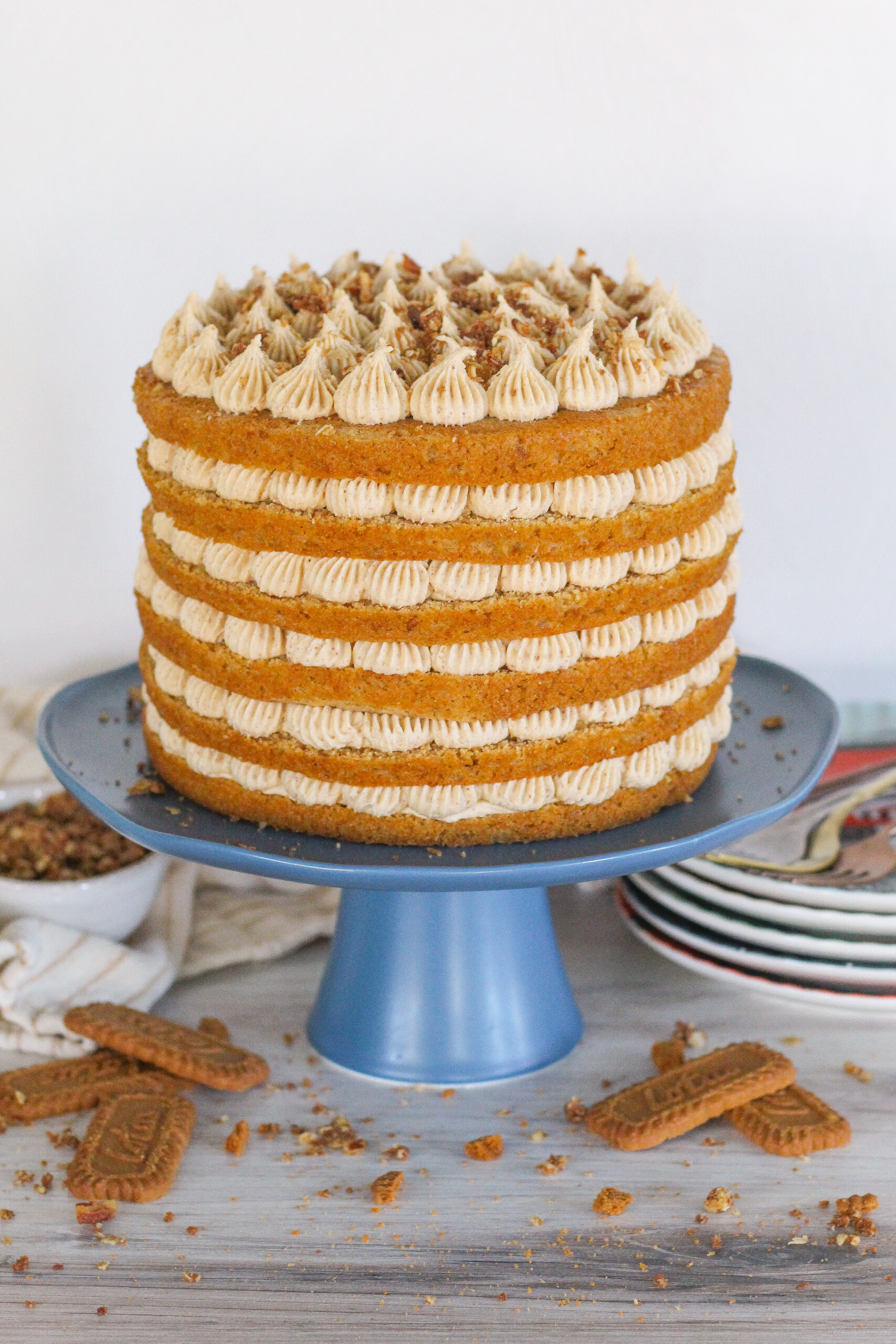 Get ready for your new favorite fall cake! My Pumpkin Biscoff Cake is made up of deliciously moist Biscoff cake layers, a no-bake pumpkin cheesecake …